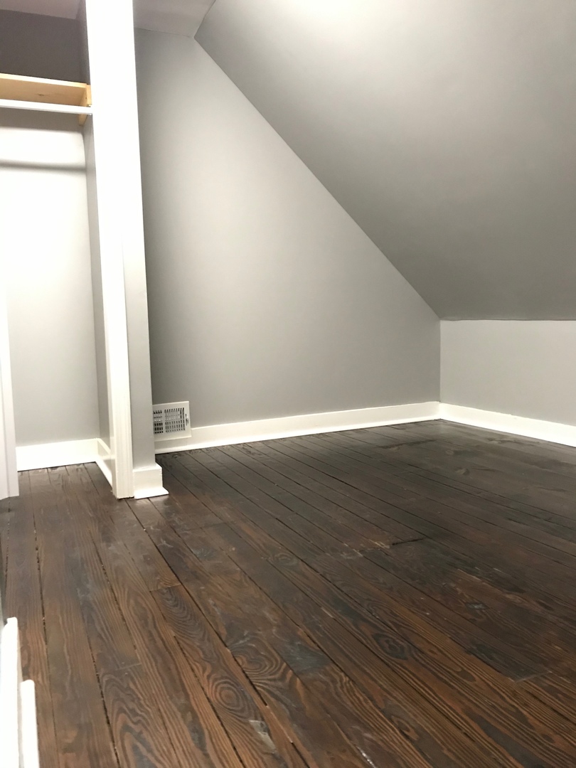 This apartment is a duplex with two bedrooms and one bathroom on the main floor and one bedrooms upstairs.