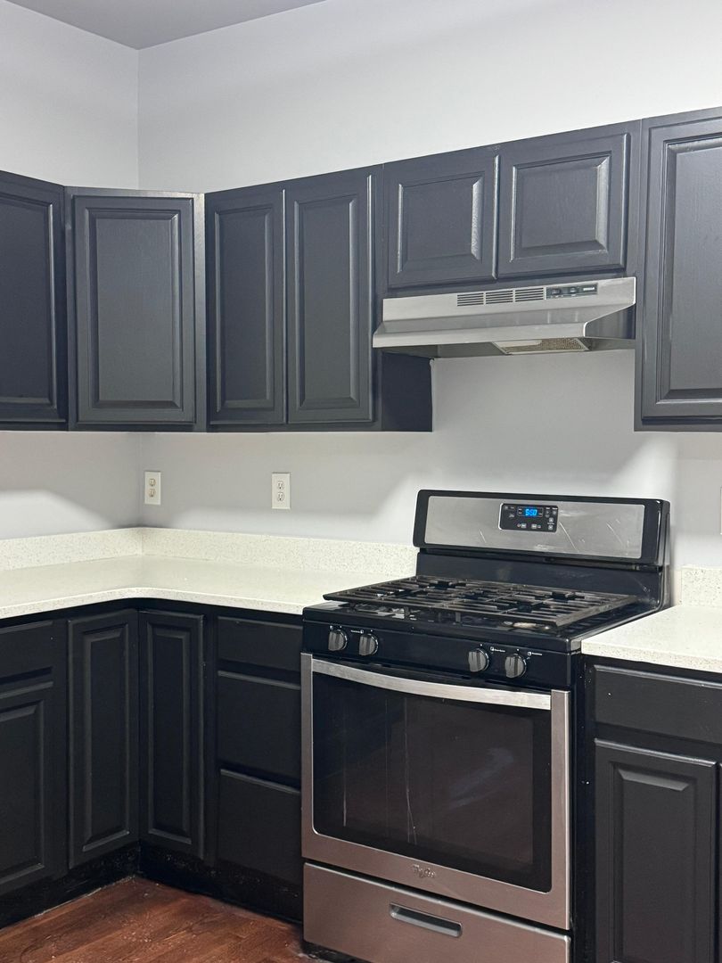 The kitchen cabinets have been updated, the countertops are granite, and all of the appliances are brand-new stainless steel.